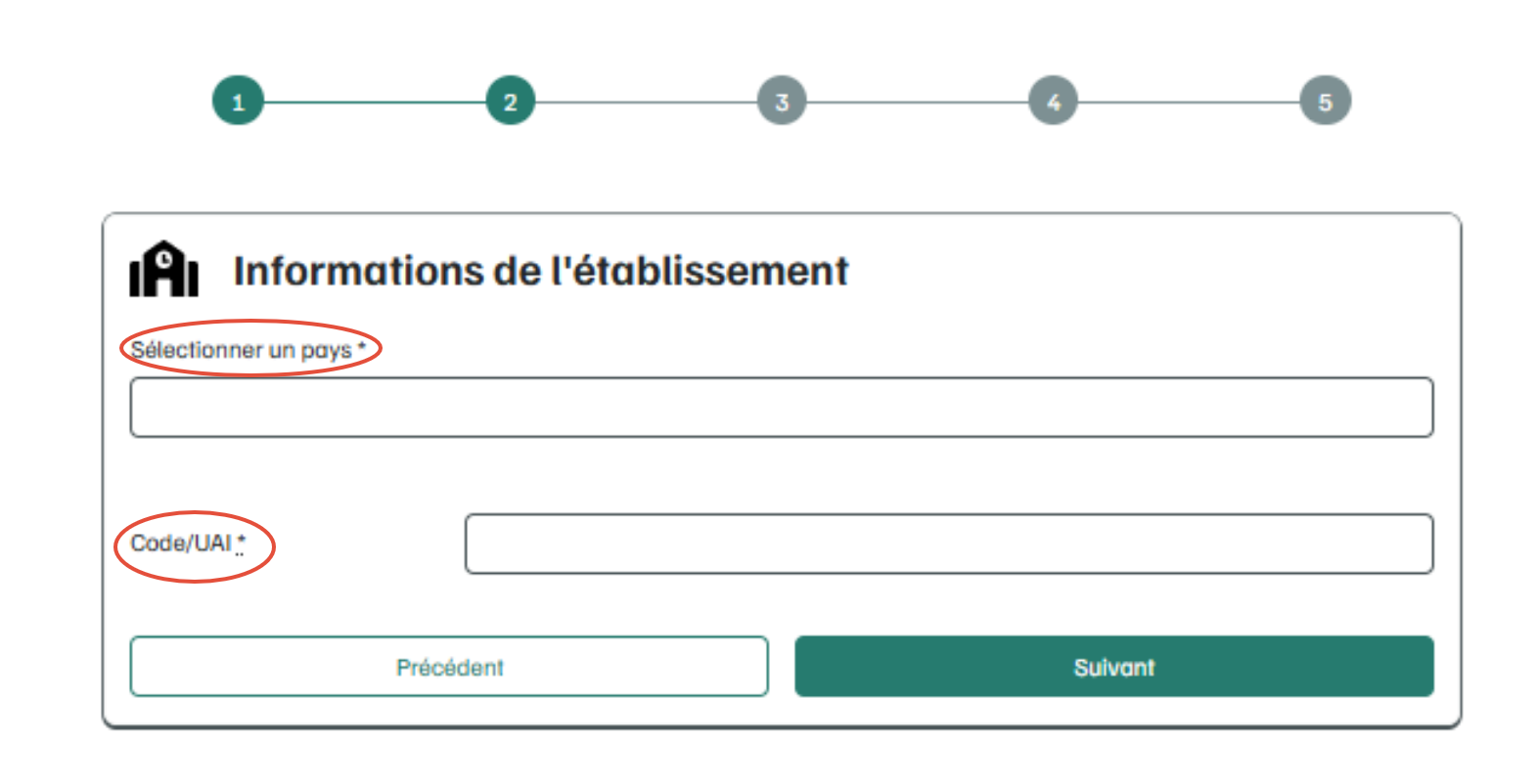 - Si vous ne retrouvez pas votre établissement dans cette liste, vous pouvez référencer le compte de votre établissement en remplissant le formulaire d'information sur l'établissement ici et passer à l'étape suivante. Le code UAI/RNE indiqué ne peut pas être modifié par la suite.