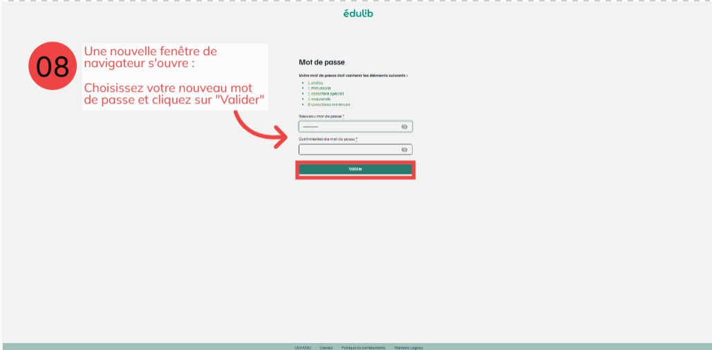 Votre mot de passe est personnel et secret. Il doit comporter au moins 8 caractères dont une majuscule et un caractère spécial.