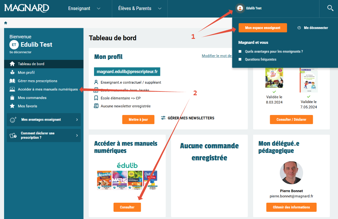 Afin de retrouver vos manuels numériques, rendez-vous dans votre espace enseignant, rubrique "Ma bibliothèque numérique"